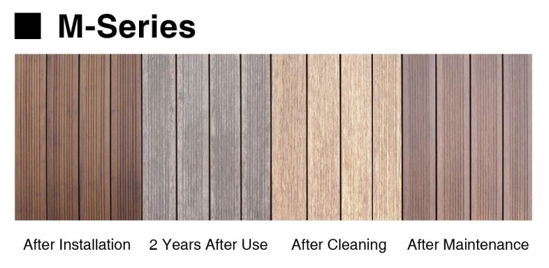 It's why we give a 20-year/30-year warranty on bamboo decking boards, but color retention is not covered in the warranty. See the picture of the bamboo decking boards used around a terrace-Years after installation, the planks are still straight and hard.